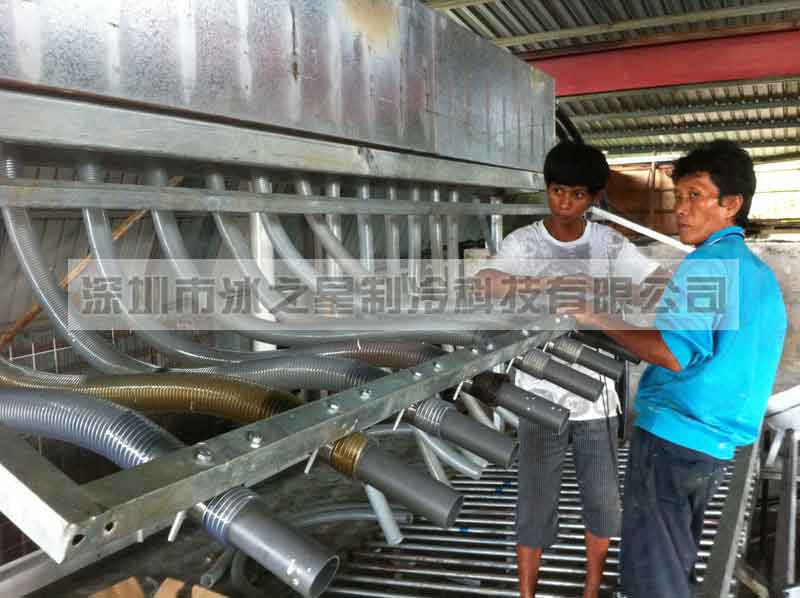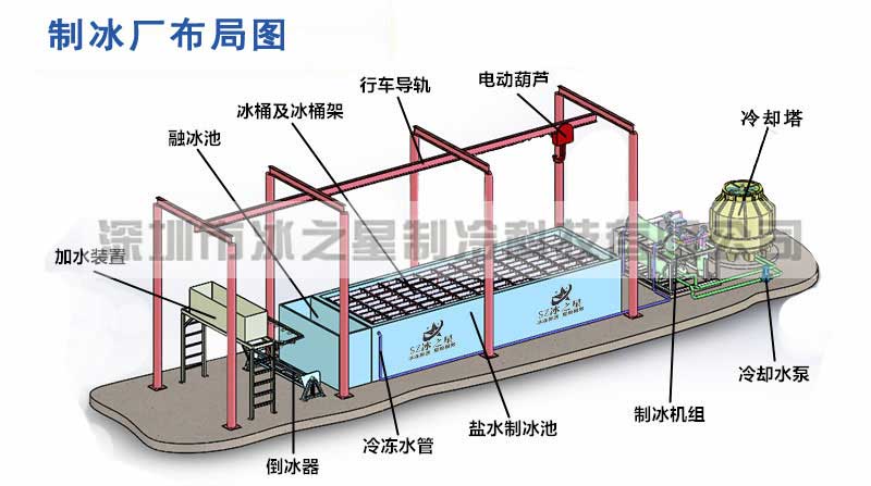 鹽水池制冰設備主要由制冰機組、鹽水制冰池、蒸發器、攪拌裝置、冰桶及冰桶架、融冰池、倒冰架、加水器、吊冰行車等組成。深圳冰之星可以為客戶提供全套的鹽水池制冰設備。