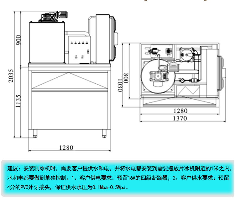 | 10 | 制冰機外型尺寸(長*寬*高) | 1370*800*900 mm | 凈尺寸 |