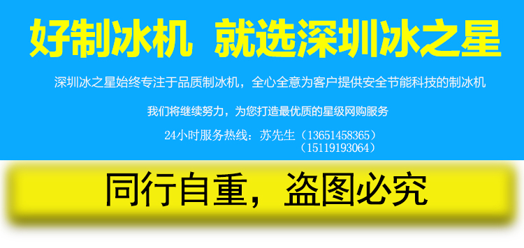 深圳市冰之星制冷科技有限公司是一家集制冰制冷設備設計研發、生產和銷售為一體的綜合高科技制冰制冷公司。公司主要經營:制冰機、片冰機、塊冰機、冰磚機、條冰機、鹽水式塊冰機、直冷式塊冰機、海水船用制冰機、管冰機、冰粒機、方冰機、真空預冷機、真冰溜冰場、整冰車、造雪機、室內滑雪場、冷庫工程、冷水機、混凝土冷卻系統、制冰機蒸發器、集裝箱制冰機、冰蓄冷空調等系列產品及工程!