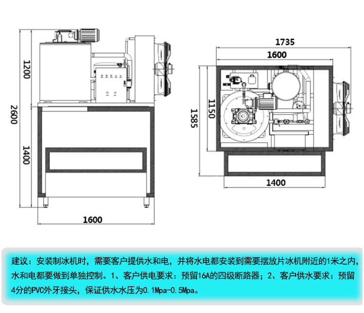 | 11 | 儲(chǔ)冰庫外型尺寸(長*寬*高) | 1600*1585*1400 mm | 儲(chǔ)冰量1200kg |