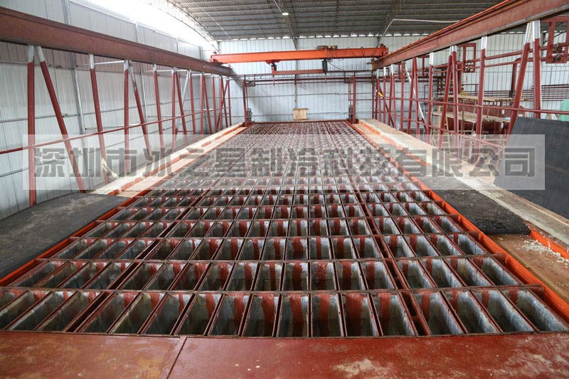 開始制冰時,將所有的冰桶加水后,放入鹽水池中,按下啟動按鈕,制冰機組開始運行。鹽水循環泵或鹽水攪拌機使鹽水池的鹽水循環流動,與蒸發器進行熱交換,鹽水溫度降低,低溫的鹽水再與冰桶內的水進行熱交換,使冰桶內的水溫降低至冰點以下,一定時間后,制冰桶內的水全部凍結成冰。融冰時,用吊冰裝置將鹽水池中的一排冰桶吊起,放入融冰池內脫模融冰。再用吊冰裝置將冰桶放在倒冰架上固定好,旋轉倒冰架,讓制冰桶的出口朝下,將塊冰倒出冰桶。擺正制冰桶后,用加水箱上的加水機構加水到規定水位,再用起吊裝置將冰桶放回至鹽水池的原來位置上,再將另一排制冰桶吊起,融冰、倒冰、加水循環操作。(制冰廠布局圖如下)