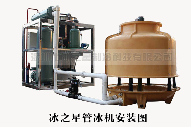 深圳冰之星15噸食用管冰機簡介: 管冰機為制冰機 的一種。因其冰塊形狀為中空管狀而得名,其內孔徑在5m