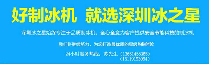 深圳市冰之星制冷科技有限公司是一家集制冰制冷設備設計研發、生產和銷售為一體的綜合高科技制冰制冷公司。公司主要經營:制冰機、片冰機、塊冰機、冰磚機、條冰機、鹽水式塊冰機、直冷式塊冰機、海水船用制冰機、管冰機、冰粒機、方冰機、真空預冷機、真冰溜冰場、整冰車、造雪機、室內滑雪場、冷庫工程、冷水機、混凝土冷卻系統、制冰機蒸發器、集裝箱制冰機、冰蓄冷空調等系列產品及工程!