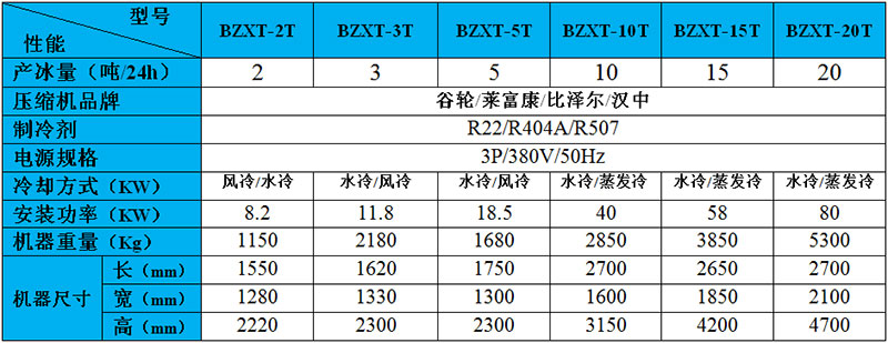 20噸食用管冰機(jī)主要技術(shù)參數(shù)